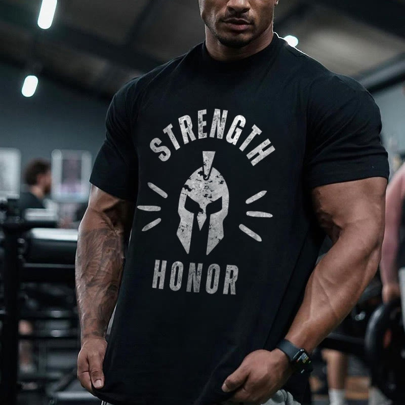 100% Cotton Rome Gladiator Strength And Honor Print T-shirt
