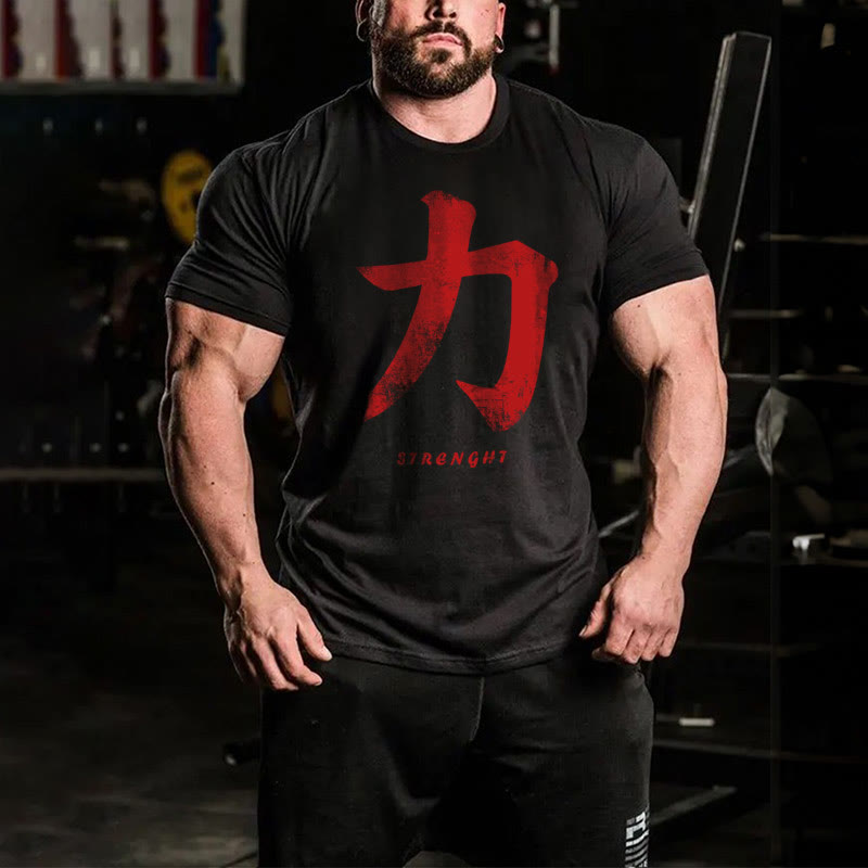 100% Cotton Japanese Kanji Strenght Print T-shirt
