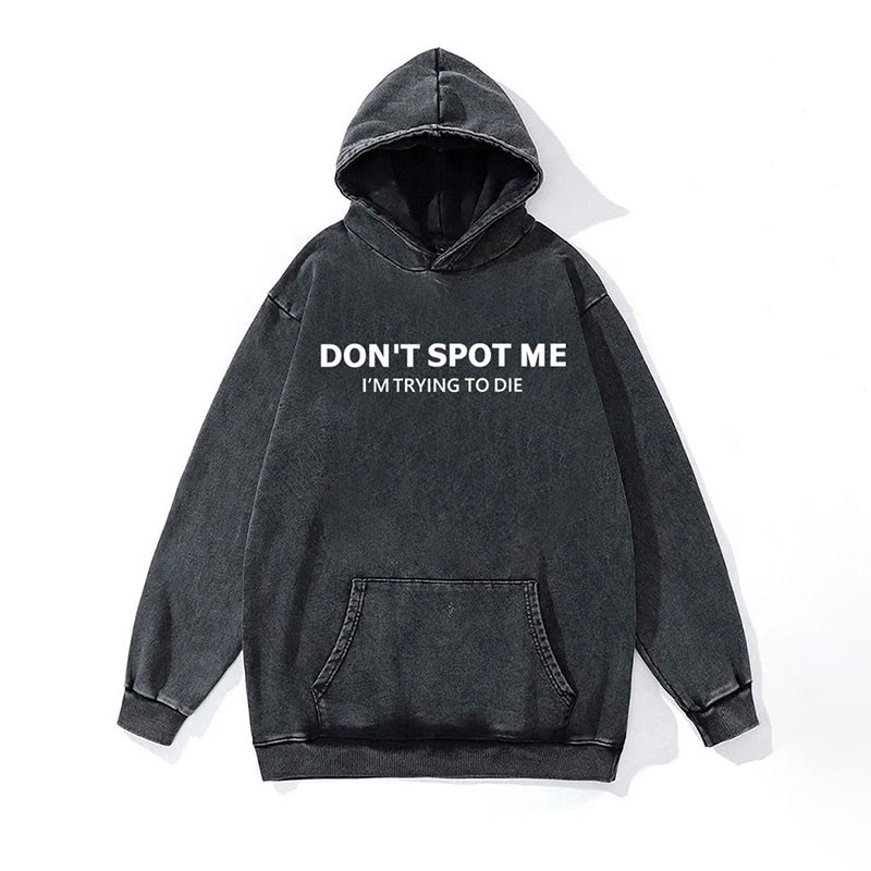 100% Cotton Don't Spot Me I'm Trying To Die Washed Gym Printed Hoodie