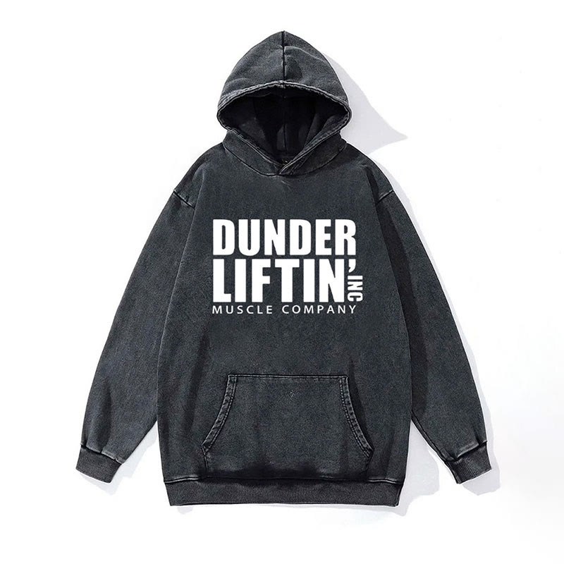 100% Cotton Dunder Lifting Muscle Company Washed Gym Printed Hoodie