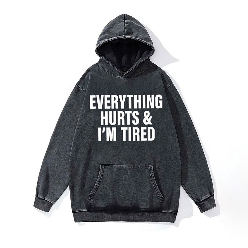 100% Cotton Everything Hurts And I'm Tired Washed Gym Printed Hoodie