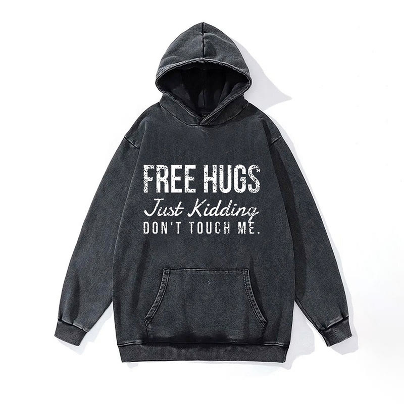 100% Cotton Free Hugs Just Kidding Don't Touch Me Washed Gym Printed Hoodie