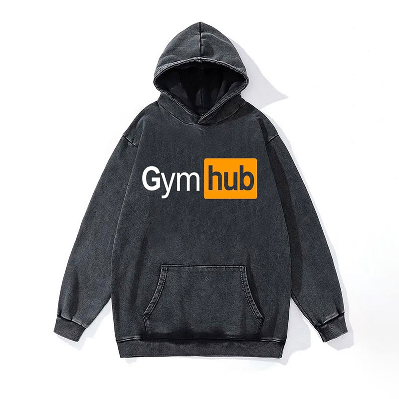 100% Cotton Gym Hub Washed Gym Printed Hoodie