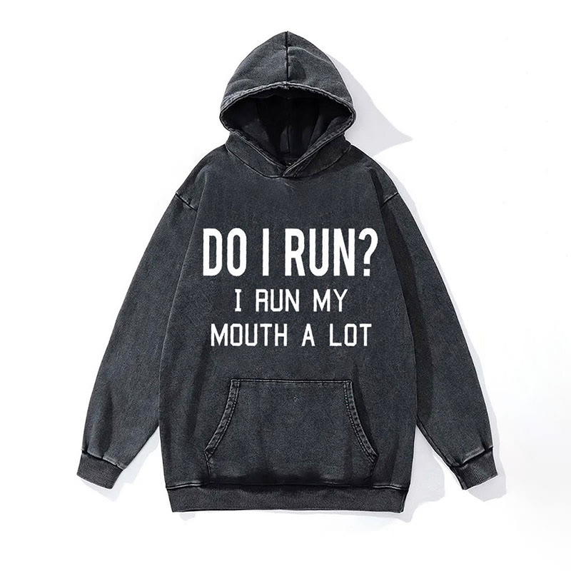 100% Cotton I Run My Mouth Washed Gym Printed Hoodie