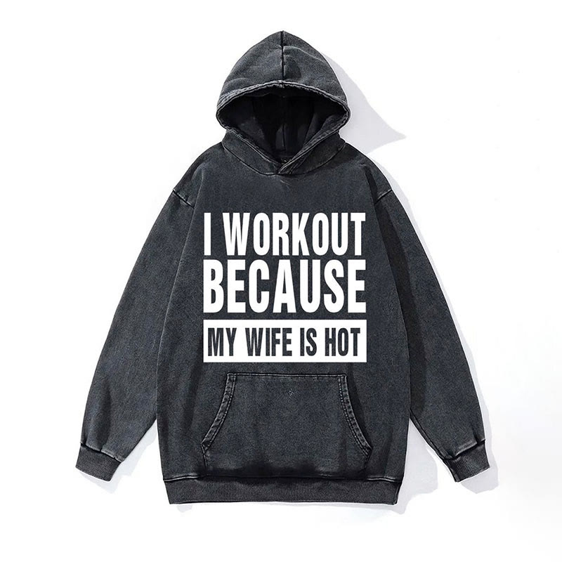 100% Cotton I Workout Because My Wife Is Hot Washed Gym Printed Hoodie