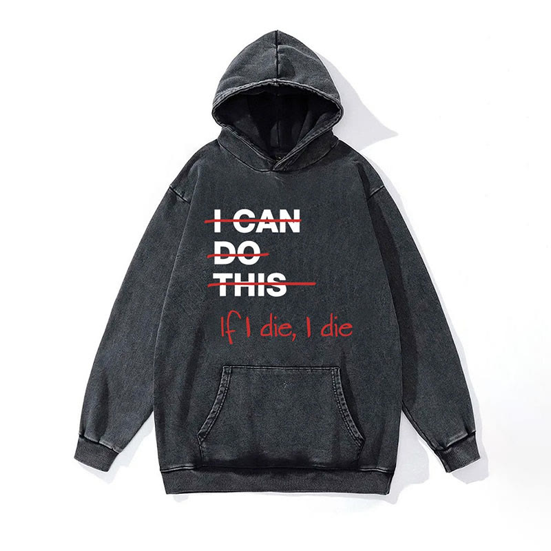 100% Cotton If I Die I Die Washed Gym Printed Hoodie