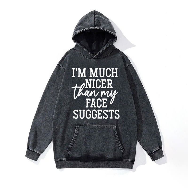 100% Cotton Much Nicer Than My Face Suggests Washed Gym Printed Hoodie