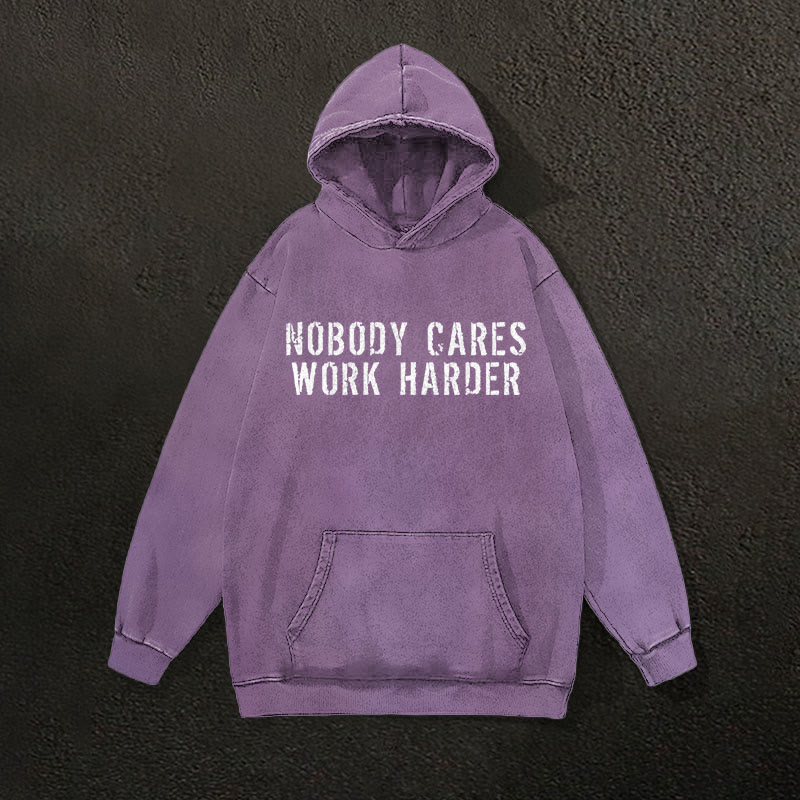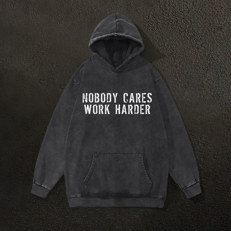 100% Cotton Nobody Cares Work Harder Printed Washed Gym Printed Hoodie