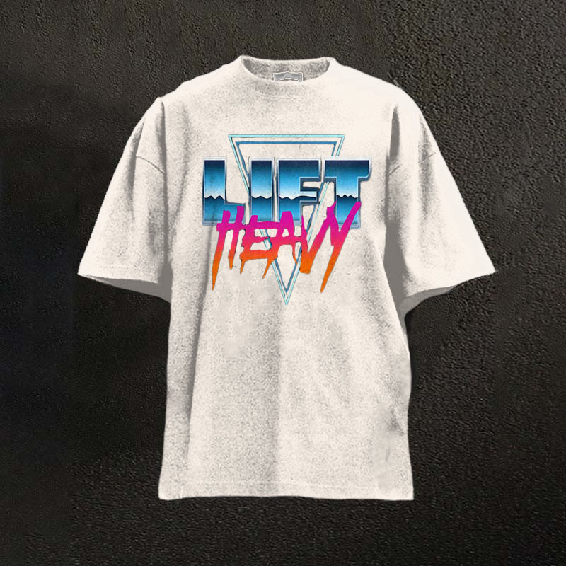 100% Cotton Lift Heavy Printed Washed Gym T-shirt