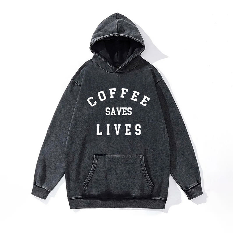 100% Cotton Coffee Saves Lives Washed Gym Printed Hoodie