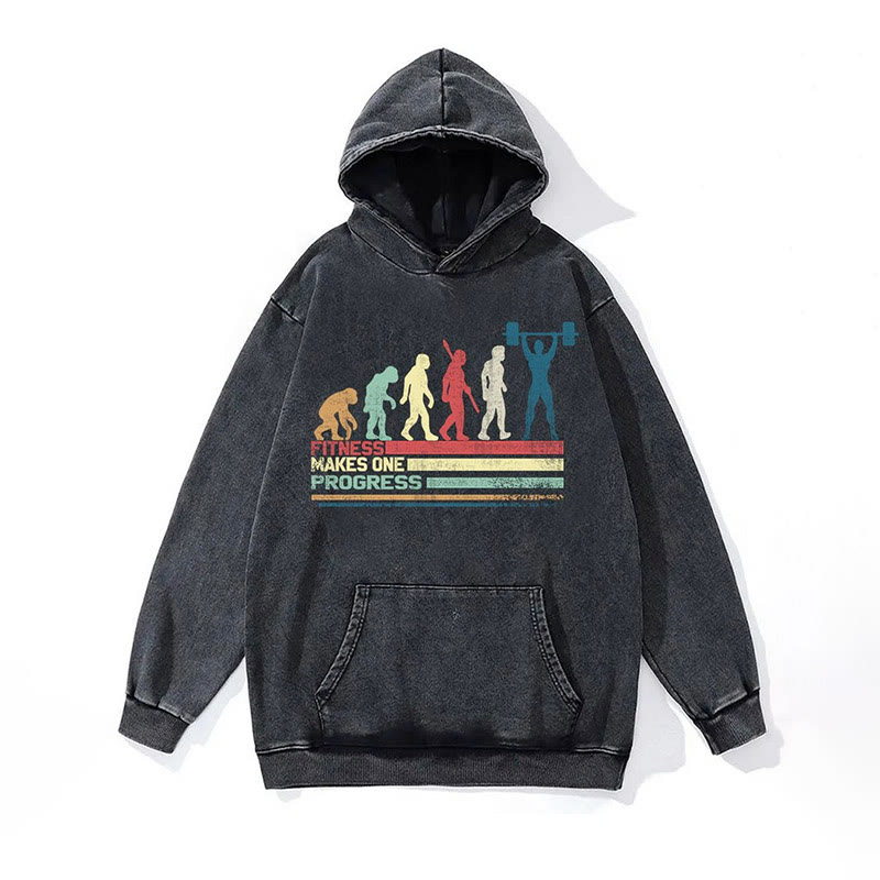 100% Cotton Fitness Make Progress Washed Gym Printed Hoodie