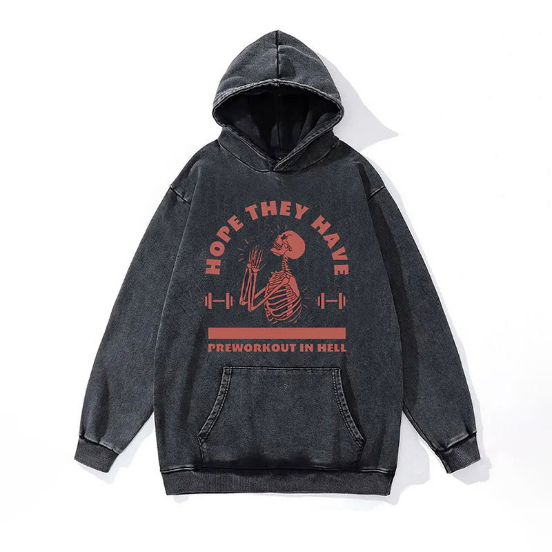 100% Cotton Hope They Have Preworkout In Hell Washed Gym Printed Hoodie