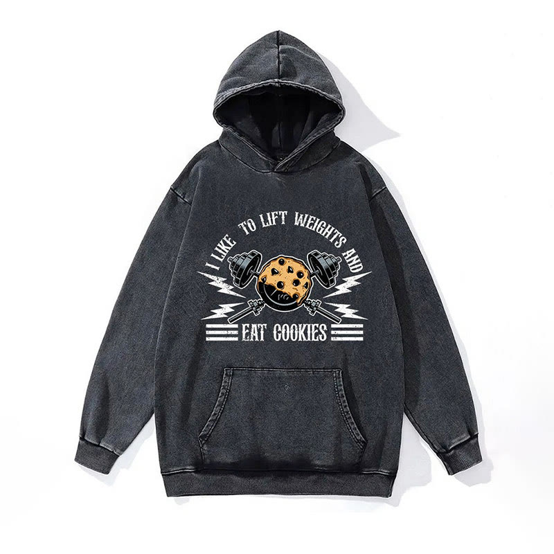 100% Cotton I Like To Lift Weight And Eat Cookies Washed Gym Printed Hoodie