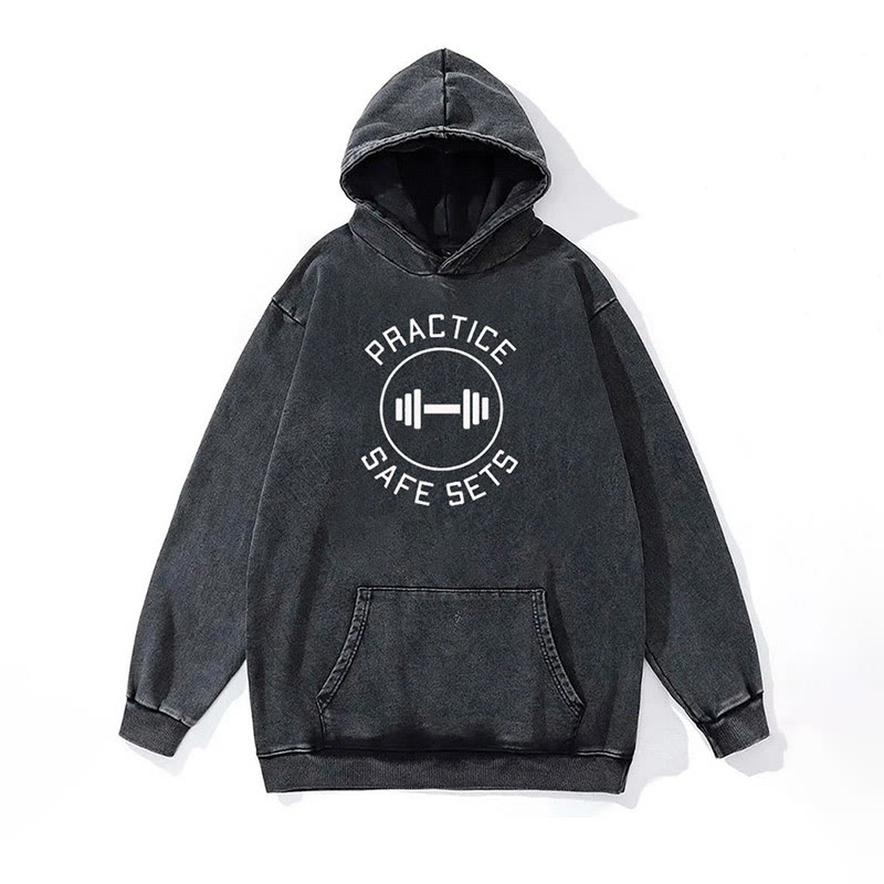 100% Cotton Practice Safe Sets Washed Gym Printed Hoodie