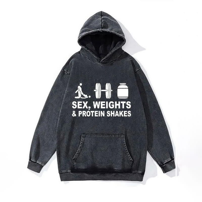 100% Cotton Sex Weights & Protein Washed Gym Printed Hoodie