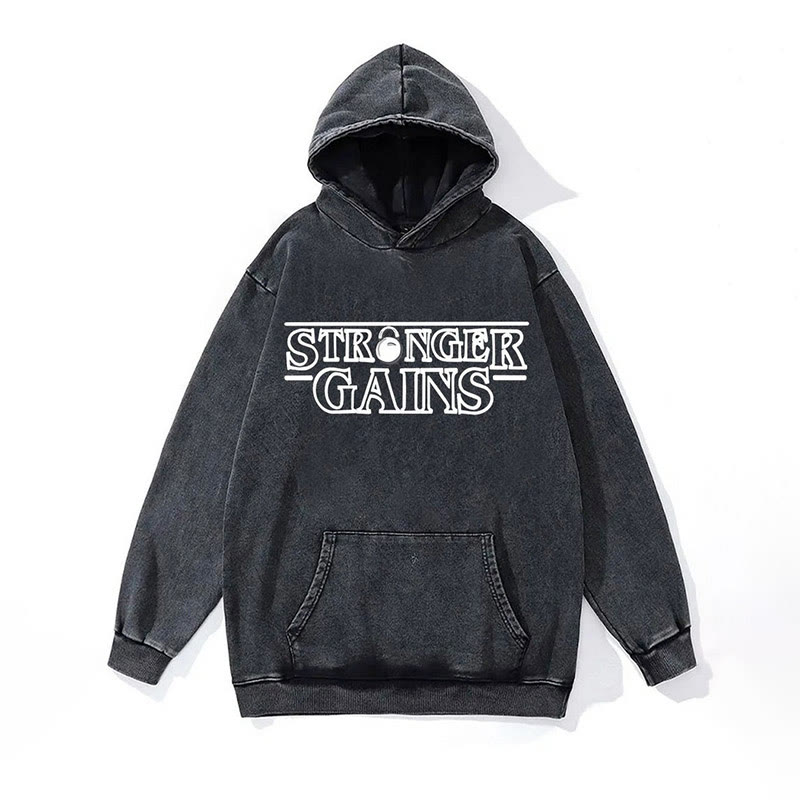 100% Cotton Stronger Gains Washed Gym Printed Hoodie