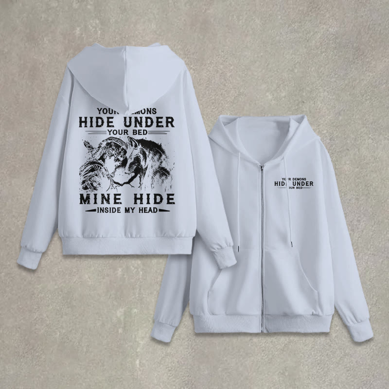 Gym 100% Cotton Your Demons Hide Under Your Bed Print Zip Hoodie